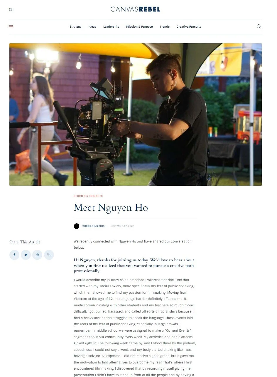 Nguyen Ho, aka “Carrot”, is an Award-Winning filmmaker, who graduated from Savannah College of Art and Design with the highest honor for his Bachelor’s Degree in Film and Television in 2023.