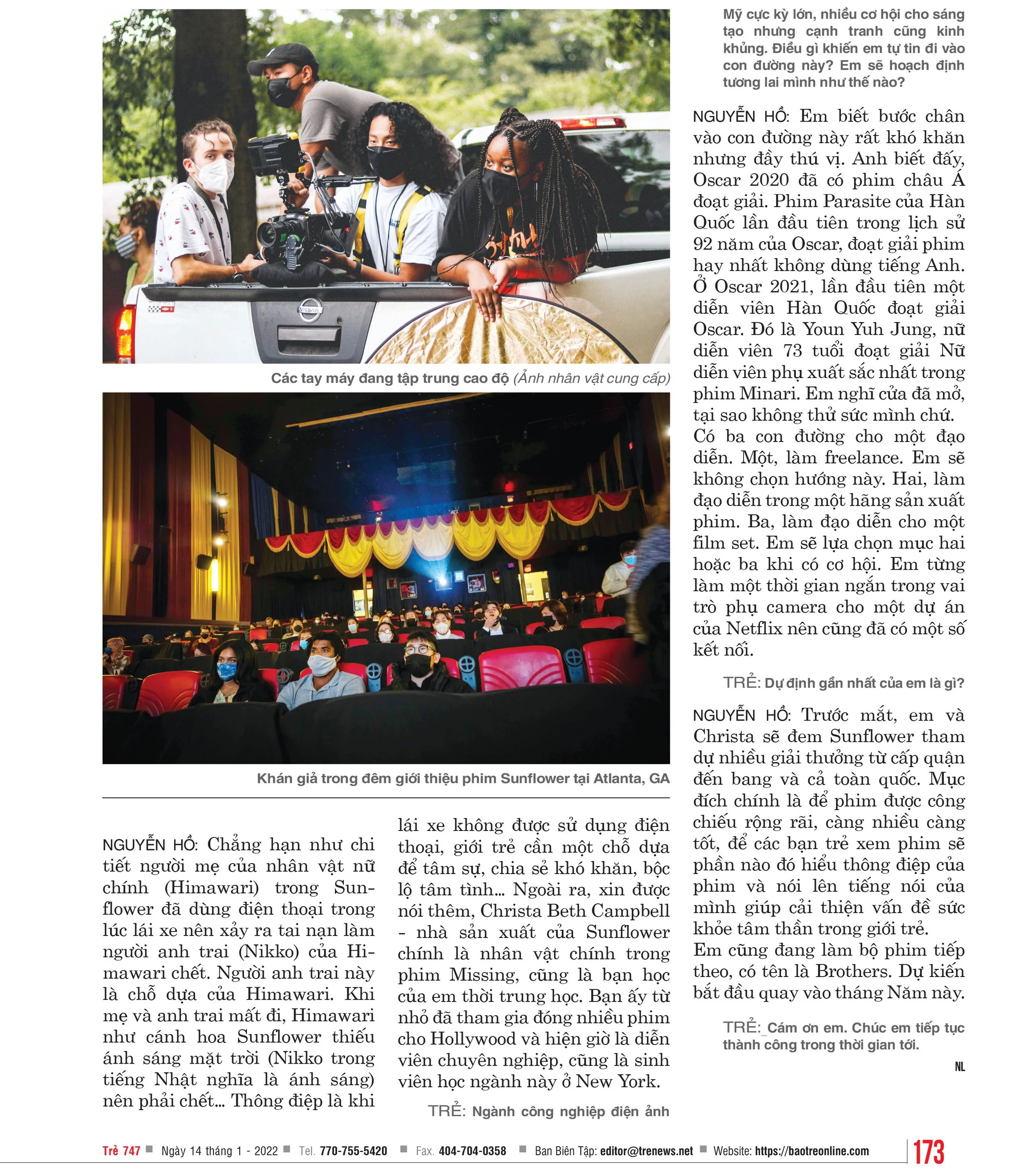 Nguyen worked on numerous narrative projects ranging from student to professional sets. He has worked alongside USA Olympic athletes, SONY, and in music videos with artists such as Lil Durk. His latest award-winning narrative short “Sunflowers” premiered back in January 2022. The film is currently in the festival run and has already received many recognitions from festivals based in Boston, Atlanta, and Los Angeles for Best Student Indie Short, Best Student Director, and Best Drama respectively. Additionally, Nguyen co-founded the film production company, YR Productions, LLC.